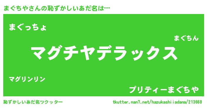 | 女子向けラノベタイトル風あだ名 | 『まぐちやなんてお断りですっ。』 |