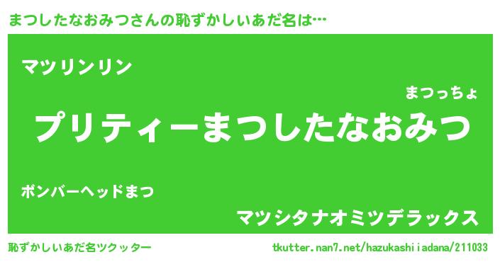 | 胡散臭い通販商品みたいなあだ名 | 『億万長者になれる水晶球…その名も「まつしたなおみつ」』 |