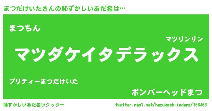 | ヒーロー風カッコイイあだ名 | 『ウルトラ戦士マツダケイタ』 |