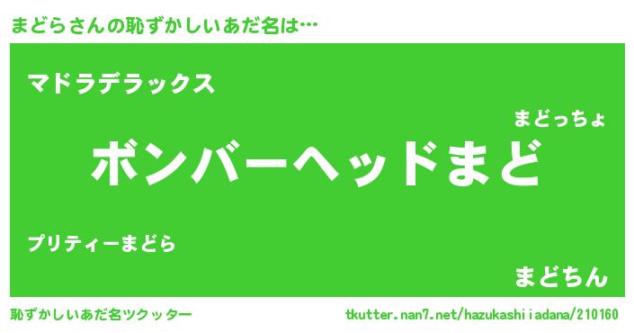 | 意味不明あだ名 | 『眠気覚ましガムまどら味』『自称まどら』 |