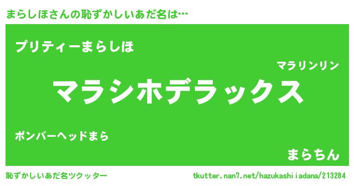 | 男性向けラノベタイトル風あだ名 | 『マラシホスレイヤー』『緋弾のマラシホ』 |