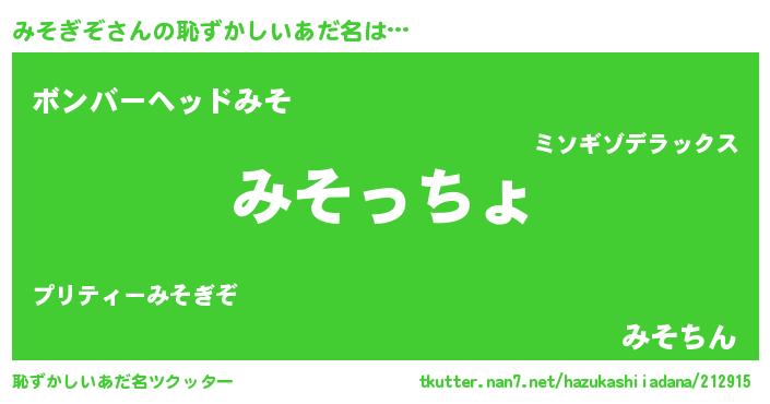 | ヘコむあだ名 | 『豆乳』『みそぎぞ(笑)』『みそにー』 |