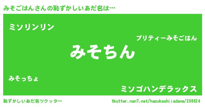 | 意味不明あだ名 | 『永久保存みそごはん』『自称みそごはん』 |