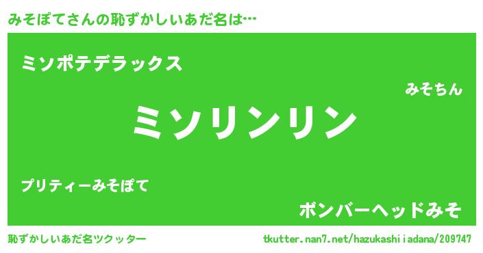 | ヘコむあだ名 | 『みそぷりん』『みそぽて(笑)』 |