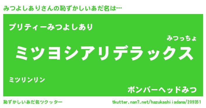 | 意味不明あだ名 | 『自称みつよしあり』 |