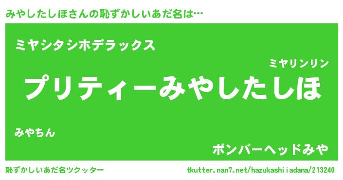 | ヘコむあだ名 | 『みやふぇ~』『みやを』『豆乳』 |