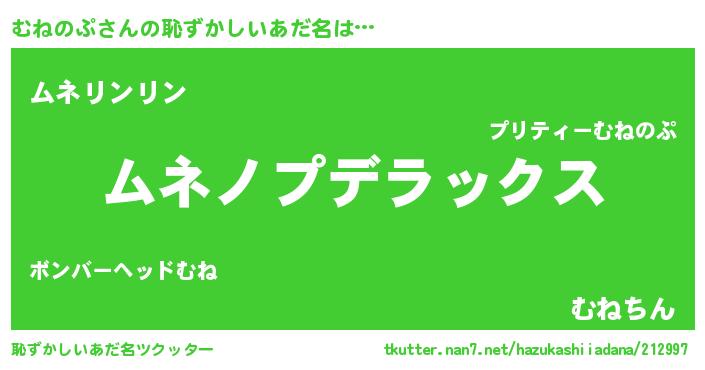 | 肩書あだ名 | 『むねのぷ総統』『むねのぷリーダー』 |