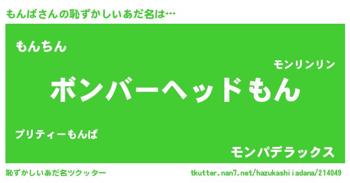 | ヘコむあだ名 | 『もんぱ(笑)』『もんぷりん』『豆乳』 |
