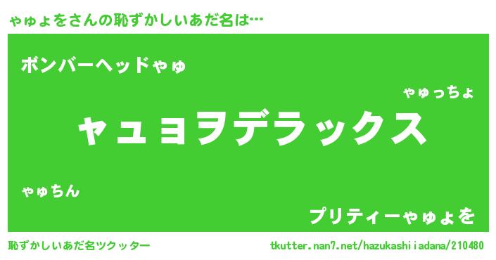 | 男性向けラノベタイトル風あだ名 | 『緋弾のャュョヲ』『魔弾の王とゃゅょを』 |