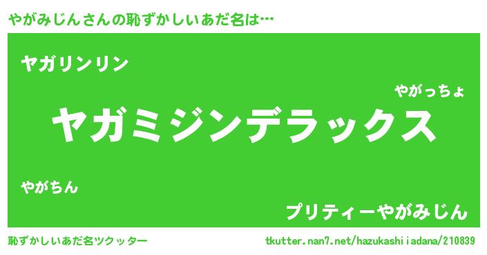 | 女子向けラノベタイトル風あだ名 | 『やがみじんアンティーク』 |