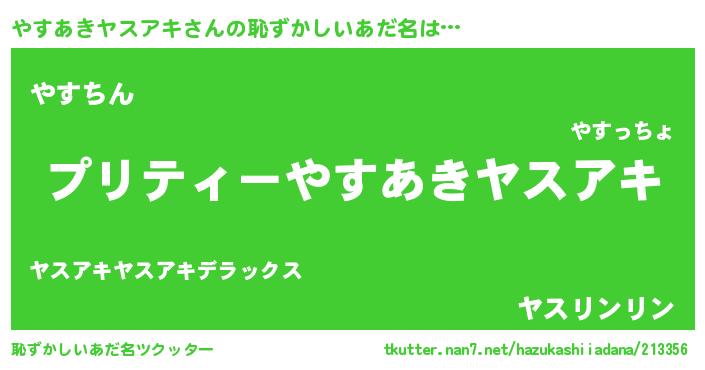 | ヘコむあだ名 | 『やすにー』『やすあきヤスアキ(震え声)』 |