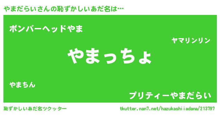 | 意味不明あだ名 | 『住所不定無職やまだらい(13歳)』 |