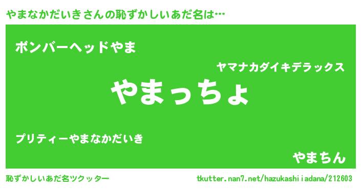 | ファンタジー風あだ名 | 『エターナルヤマナカダイキー』 |