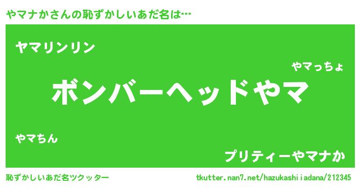 | ヒーロー風カッコイイあだ名 | 『正義の使者やマナか』『暗黒騎士ヤマ』 |