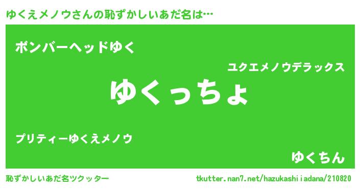 | ヘコむあだ名 | 『なまこ酢』『ゆくえメノウ(小並感)』 |