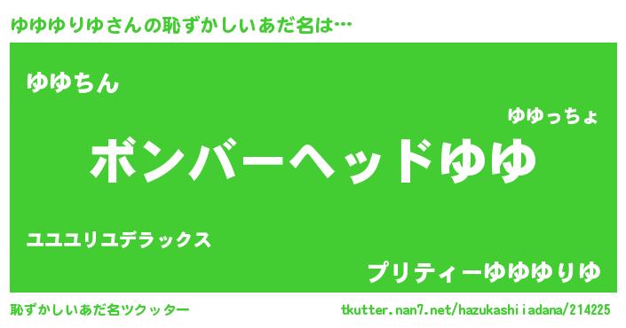 | ヘコむあだ名 | 『ゆゆゆりゆ(爆)』『ゆゆにー』 |
