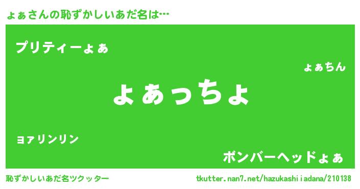 | ヘコむあだ名 | 『牛乳』『ょぁっふぃ~』『ょぁお』 |