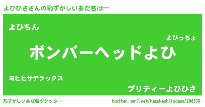 | ヘコむあだ名 | 『よひひさ(爆)』『よひにゅー』 |