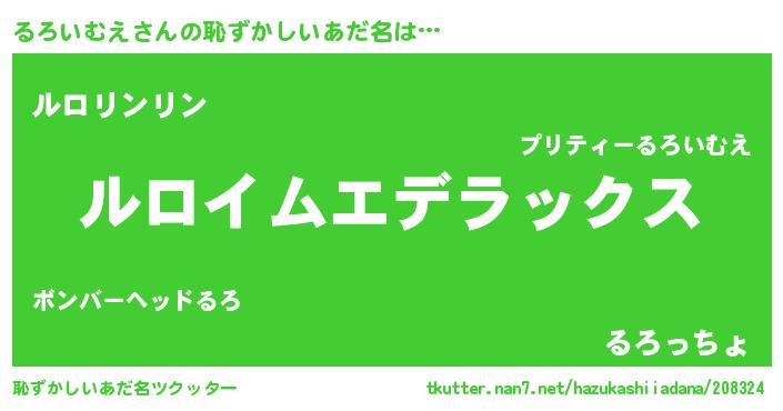 | 意味不明あだ名 | 『自称るろいむえ』『ペロリンるろいむえ』 |