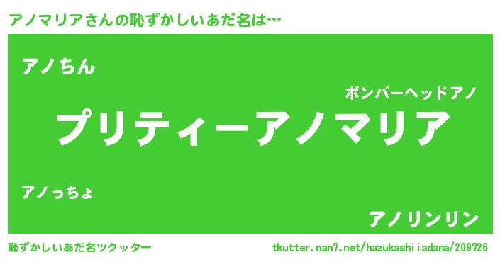 | ヘコむあだ名 | 『アノもー』『アノマリア(小並感)』 |