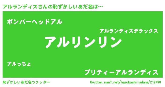 | 意味不明あだ名 | 『とにかく怪しいアルランディス』 |