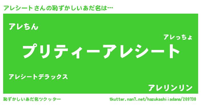 | 女子向けラノベタイトル風あだ名 | 『アレシート姫と円卓の騎士』 |