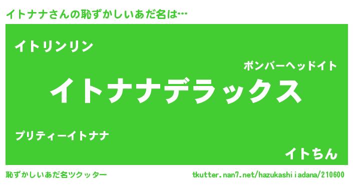 | 意味不明あだ名 | 『自称イトナナ』『永久保存イトナナ』 |