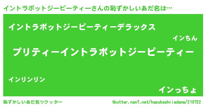 | 女子向けラノベタイトル風あだ名 | 『イントラボットジーピーティー姫と円卓の騎士』 |