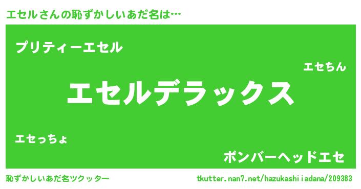 | 女子向けラノベタイトル風あだ名 | 『エセルなんてお断りですっ。』 |