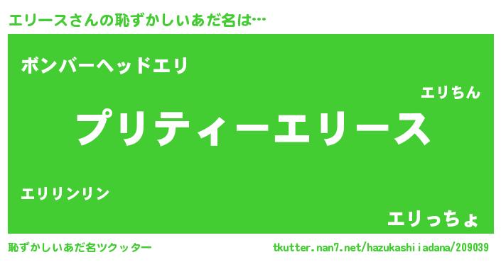 | ヒーロー風カッコイイあだ名 | 『スーパーエリース』『仮面エリダー』 |