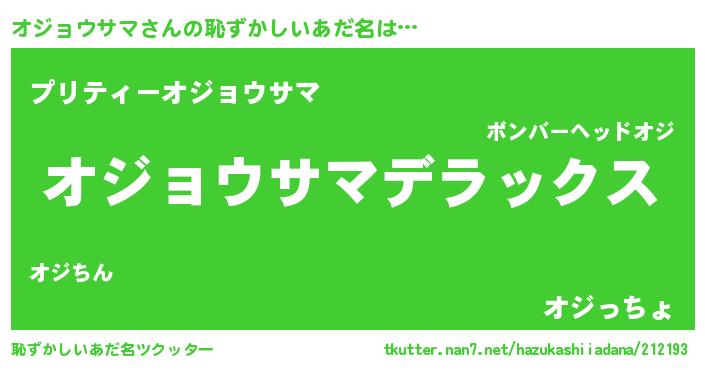 | 意味不明あだ名 | 『住所不定無職オジョウサマ(79歳)』 |