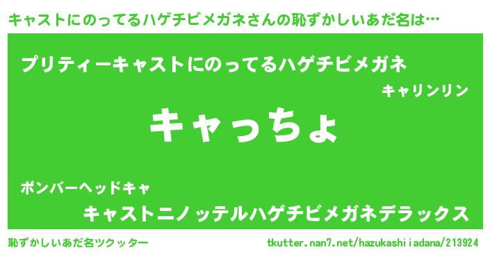 | 意味不明あだ名 | 『なめこ科キャストにのってるハゲチビメガネ属』 |