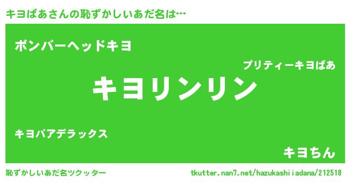 | 意味不明あだ名 | 『とにかく怪しいキヨばあ』 |