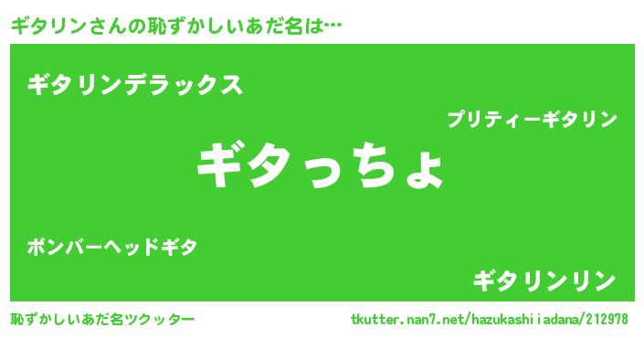 | ヘコむあだ名 | 『豆乳』『ギタぷりん』『ギタにゅー』 |