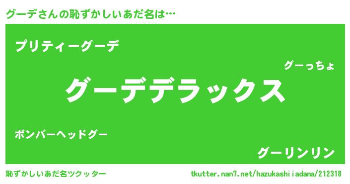 | 男性向けラノベタイトル風あだ名 | 『魔法科高校のグーデ』『グーデの憂鬱』 |