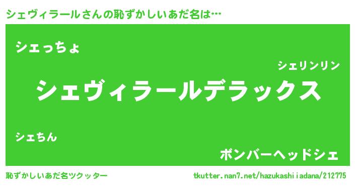 | 男性向けラノベタイトル風あだ名 | 『この素晴らしい世界にシェヴィラールを!』 |