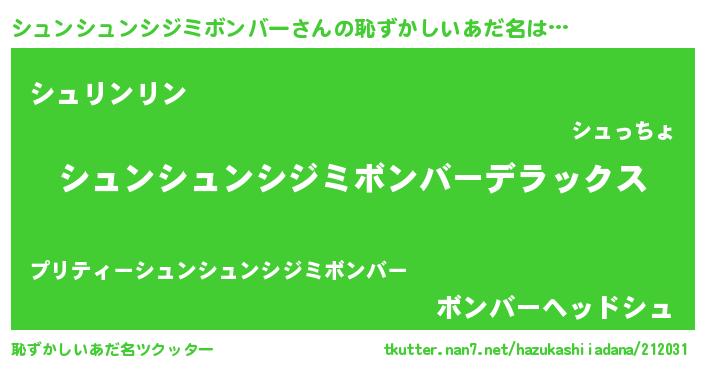 | 意味不明あだ名 | 『住所不定無職シュンシュンシジミボンバー(85歳)』 |