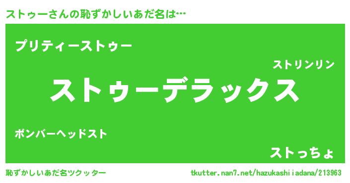 | ヒーロー風カッコイイあだ名 | 『究極戦士ストゥー』『スーパーストゥー』 |