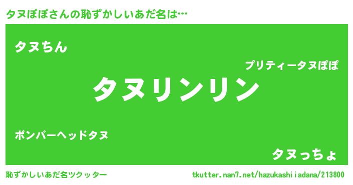 | ヒーロー風カッコイイあだ名 | 『黄金騎士タヌ』『ネオタヌポポ』 |