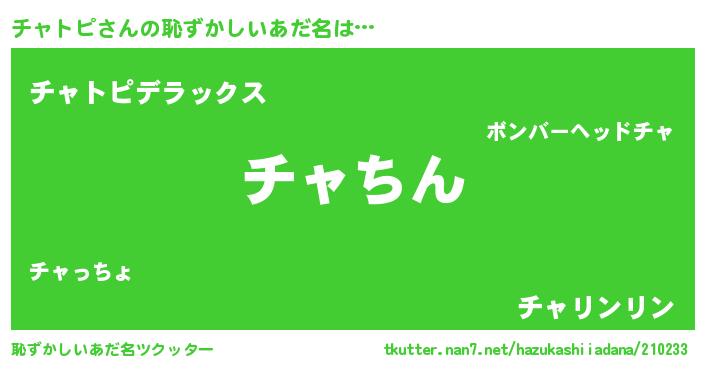 | 意味不明あだ名 | 『永久保存チャトピ』『自称チャトピ』 |