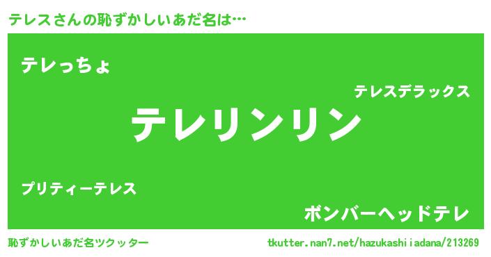 | ヘコむあだ名 | 『テレっちょ』『豆乳』『テレふぇ~』 |