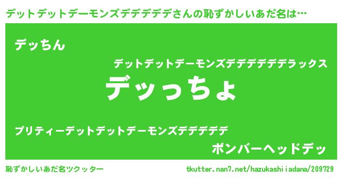 | 女子向けラノベタイトル風あだ名 | 『男装デットデットデーモンズデデデデデの憂鬱な任務』 |