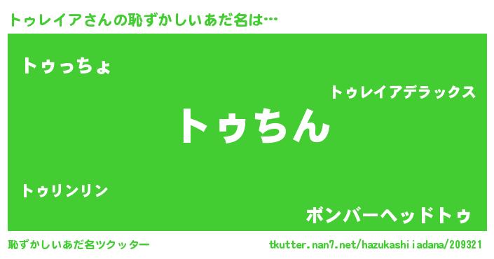 | ヘコむあだ名 | 『トゥレイア(笑)』『牛乳』『トゥお』 |