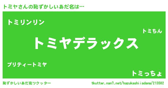 | ヒーロー風カッコイイあだ名 | 『最強戦士トミヤ』『黄金騎士トミ』 |