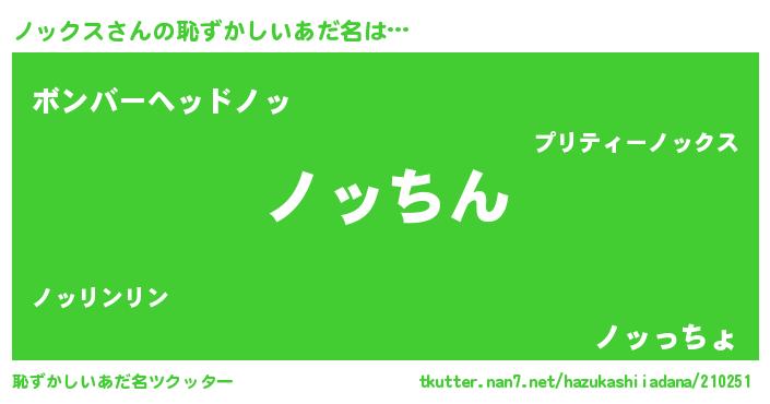 | ヒーロー風カッコイイあだ名 | 『ネオノックス』『正義の使者ノックス』 |