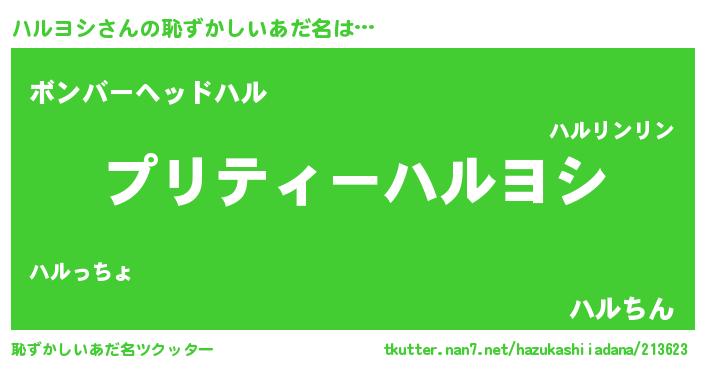 | 意味不明あだ名 | 『ペロリンハルヨシ』『永久保存ハルヨシ』 |