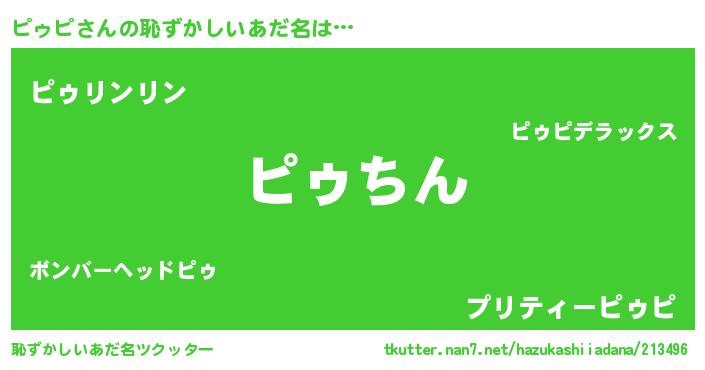 | 男性向けラノベタイトル風あだ名 | 『ピゥピスレイヤー』『ピゥピの憂鬱』 |