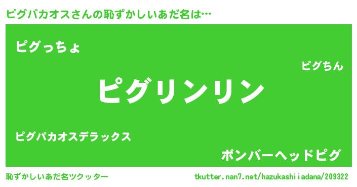 | 意味不明あだ名 | 『とにかく怪しいピグパカオス』 |