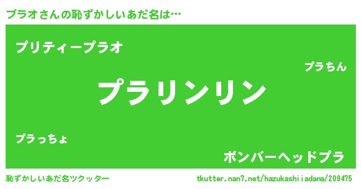 | 胡散臭い通販商品みたいなあだ名 | 『信頼と実績のサプリメント…その名も「プラオ」』 |