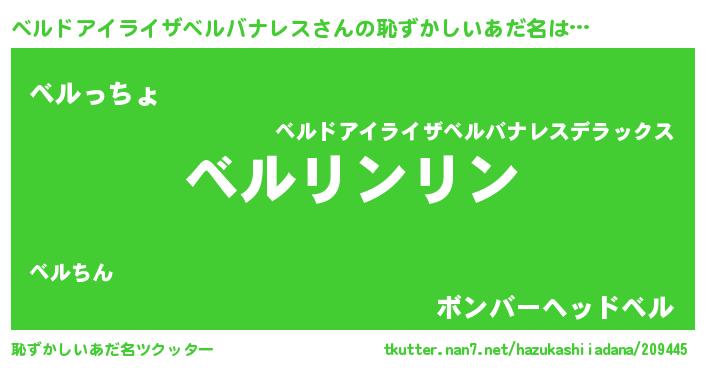 | 男性向けラノベタイトル風あだ名 | 『この素晴らしい世界にベルドアイライザベルバナレスを!』 |